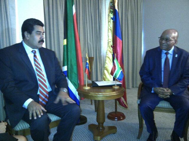 La ministra de Comunicación en Información, Delcy Rodríguez, informó que el presidente Nicolás Maduro se encuentra reunido en estos momentos con su par de Sudáfrica, Jacob Zuma. Este es el primer encuentro bilateral de los mandatarios previo a la Cumbre Brics (Brasil, Rusia, India, China y Sudáfrica).