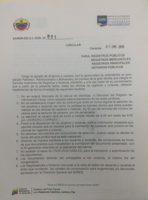 Igualmente, se prohíbe “solicitar requisitos como fotocopias de cédulas y del RIF”.