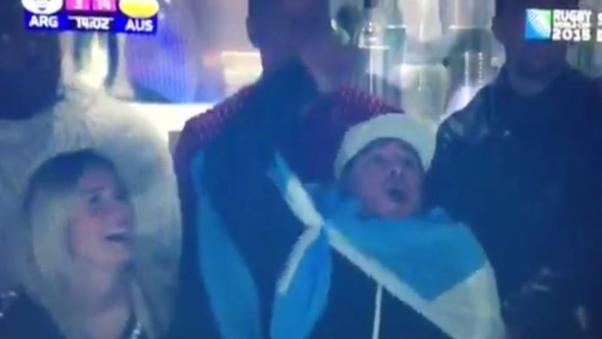En el partido que afrontaban Los Pumas ante Australia por las semifinales del Mundial de Rugby en Londres, Diego Maradona estuvo presente alentando al equipo argentino y de paso, regaló un momento para el recuerdo.