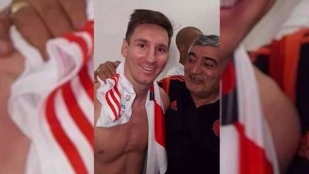Después de terminado el partido por 3-0 a favor del Barcelona, Lionel Messi se acercó al vestuario del River Plate y no dudó en aceptar una foto de un miembro del staff. La 'Pulga' no tuvo inconveniente en colgarse la camiseta del equipo argentino.