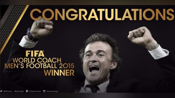 El técnico del Barcelona Luis Enrique Martínez ha sido distinguido con el premio al Mejor Entrenador de 2015 durante la gala FIFA Balón de Oro, que se está celebrando este en el Palacio de Congresos de Zúrich (Suiza).La FIFA ha premiado al técnico español por los cinco títulos -Liga, Liga de Campeones, Copa del Rey, Supercopa de Europa y Mundial de Clubes- que consiguió en su primera temporada en el banquillo azulgrana.