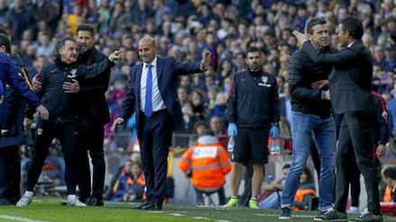 Luis Enrique, entrenador azulgrana, reaccionó de manera iracunda por la terrible entrada que sufrió su dirigido Lionel Messi por parte del lateral brasileño Filipe Luis. Esto no le gustó nada a Óscar Ortega, preparador físico 'colchonero', quien salió de su zona para responderle al 'culé'.