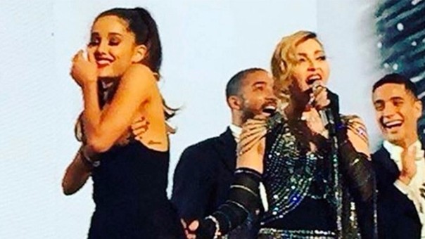 Tal y como lo hiciera anteriormente con Katy Perry, Madonna, la reina del pop sacó al escenario de Miami durante uno de sus conciertos de su gira "Rebel Heart" a la estrella pop Ariana Grande.