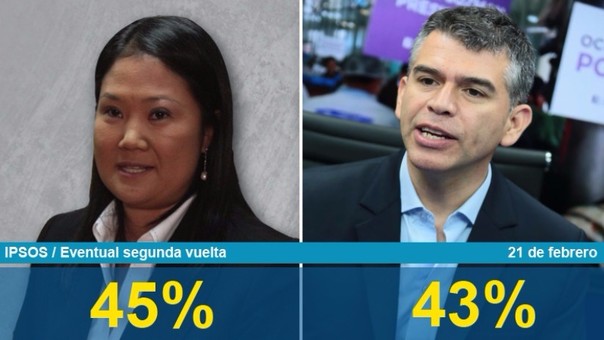 Y si la contienda fuera contra César Acuña (Alianza por el Progreso), la lideresa de Fuerza Popular también se impondría con 48 % frente a 28 %.