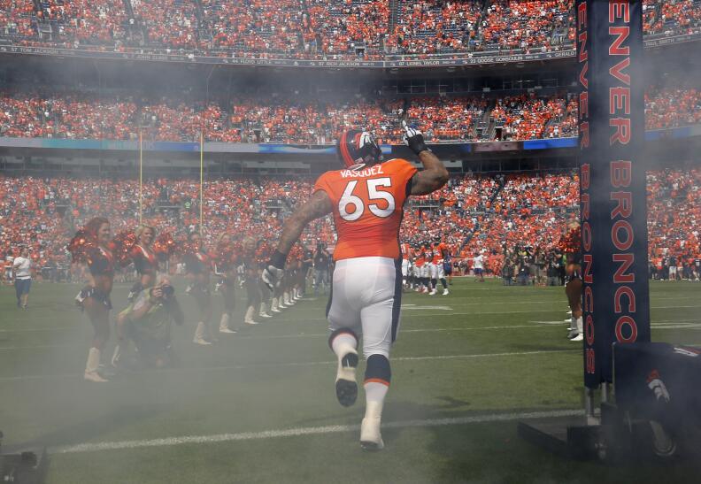 Louis Vasquez nació el 11 de abril de 1987 en Corsicana, Texas, tiene 28 años de edad. Egresado de Texas Tech fue seleccionado en la Tercera Ronda del Draft en 2009 por los San Diego Chargers donde jugó hasta 2012. En 2013 empezó una carrera de éxito con los Broncos, incluso fue al Pro Bowl en 2013. UNIVISION.COM
