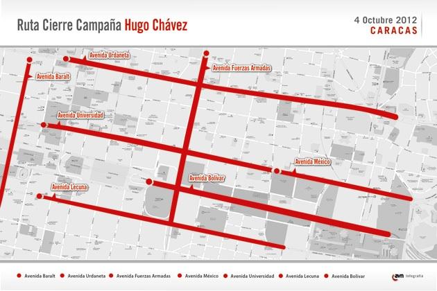 Un total de siete avenida ya se encuentran cerradas debido al acto de campaña del candidato del gobierno a la reelección Hugo Chávez. La avenida Lecuna, Universidad, Urdaneta, Fuerzas Armadas, México, Baralt y Bolívar serán los puntos de concentración de los seguidores del oficialismo.